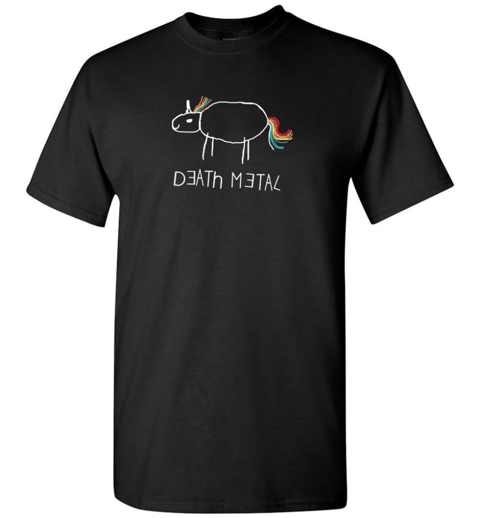 Featuring bold graphics that marry the dark themes of death metal with the light-heartedness of unicorns, the Death Metal Unicorn Shirts make a statement that's impossible to ignore. It's an awesome rock shirt gift that says you're not afraid to show off your diverse tastes. The striking design is sure to appeal to those who have a penchant for unique band merchandise, fantasy art, or simply love to stand out from the crowd.