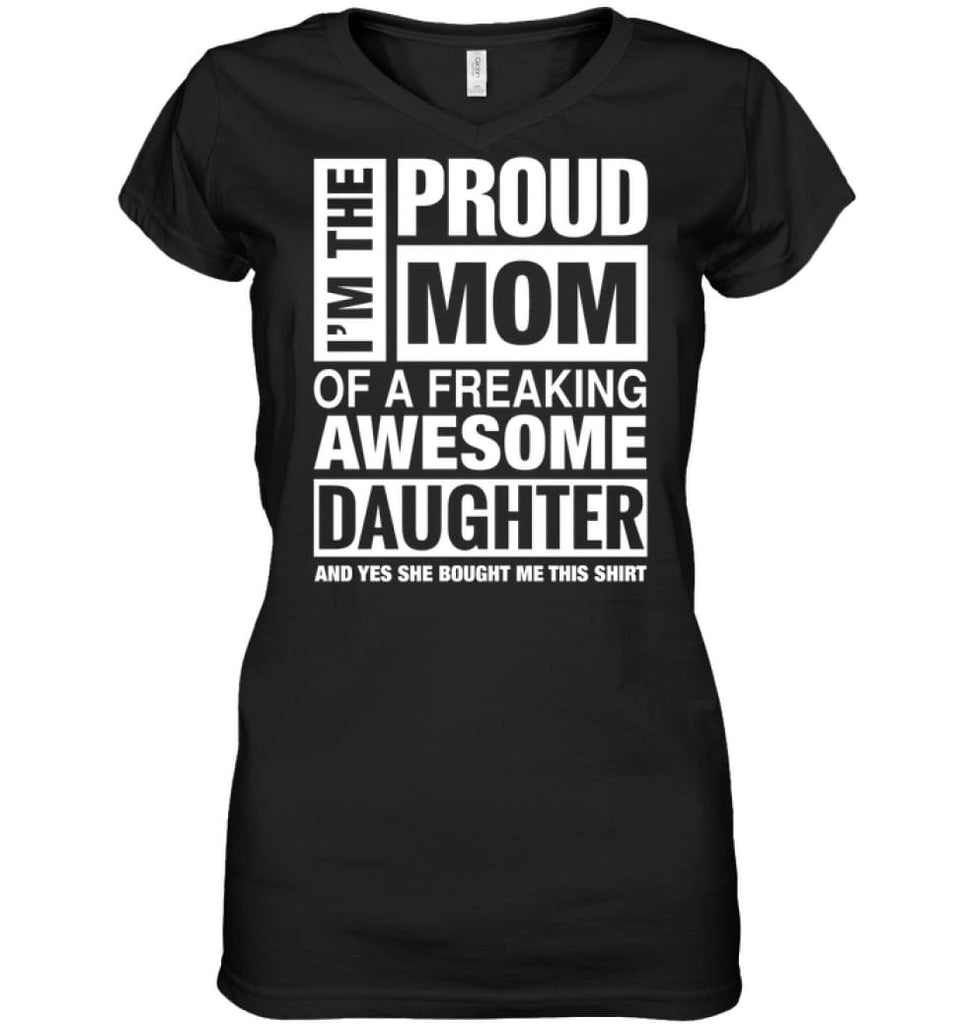 Proud MOM Of Freaking Awesome Daughter She Bought Me This Ladies V-Neck