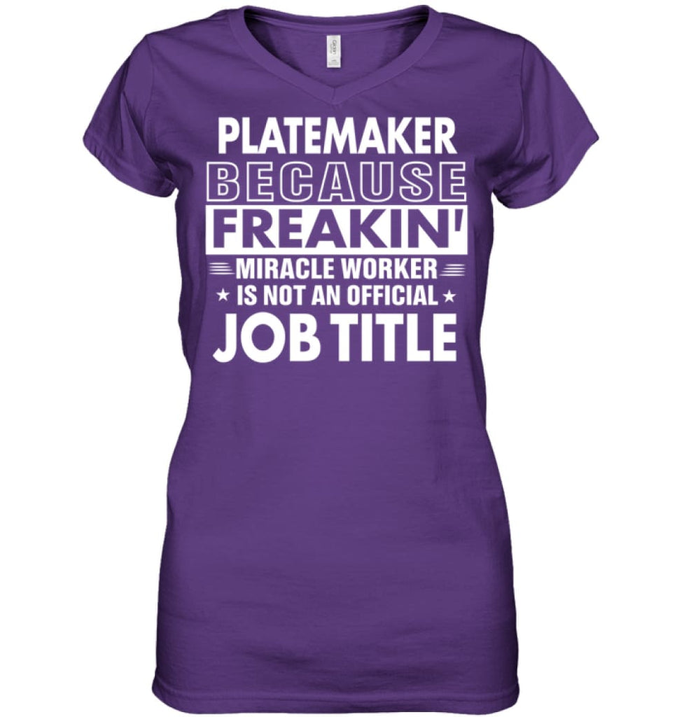 Platemaker Because Freakin' Miracle Worker Job Title Ladies V-Neck