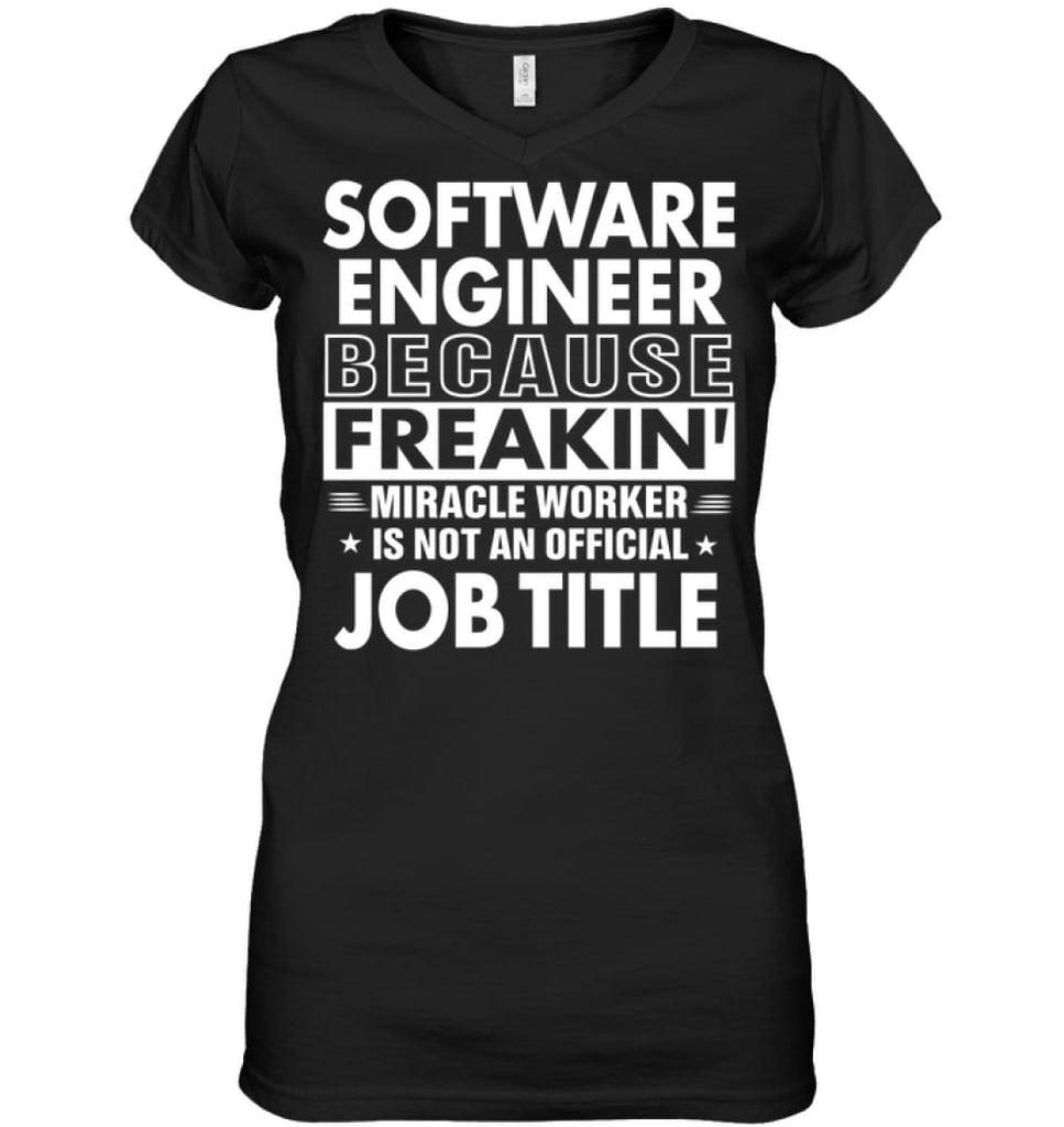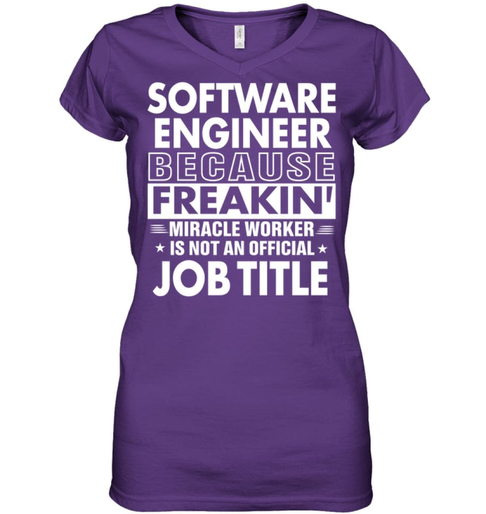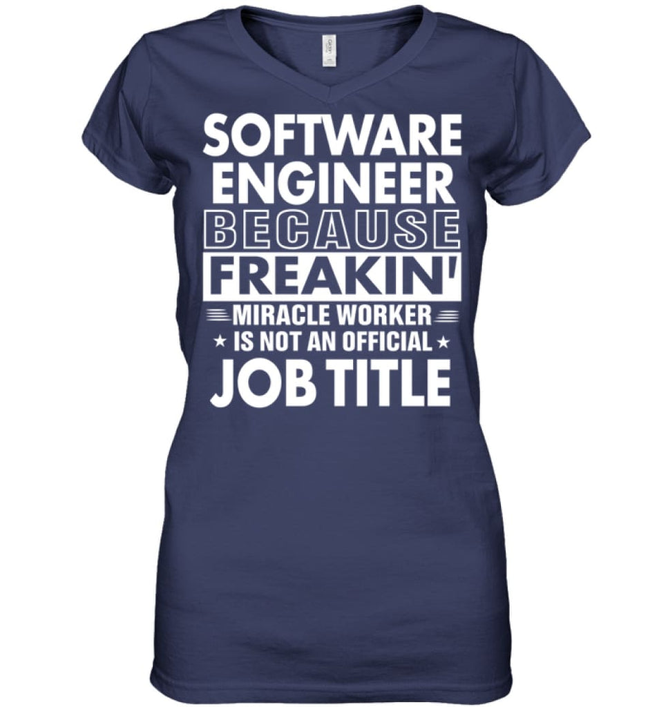 Software Engineer Because Freakin' Miracle Worker Job Title Ladies V-Neck