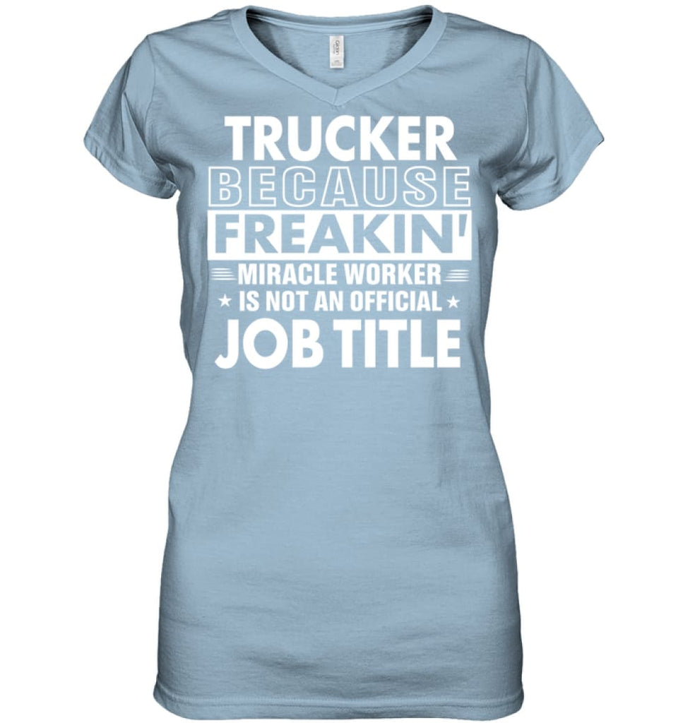 Trucker Because Freakin' Miracle Worker Job Title Ladies V-Neck