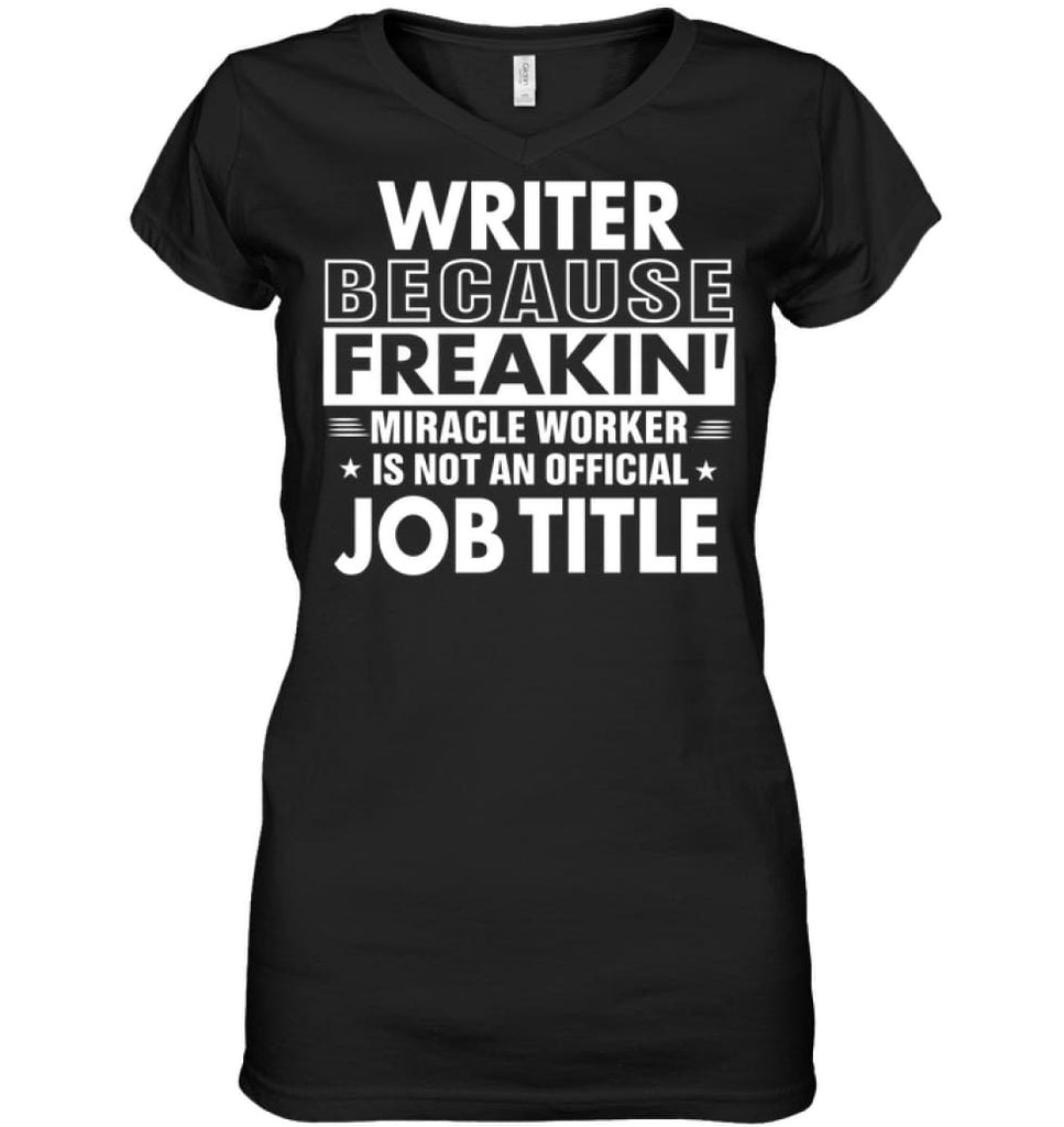 Writer Because Freakin' Miracle Worker Job Title Ladies V-Neck