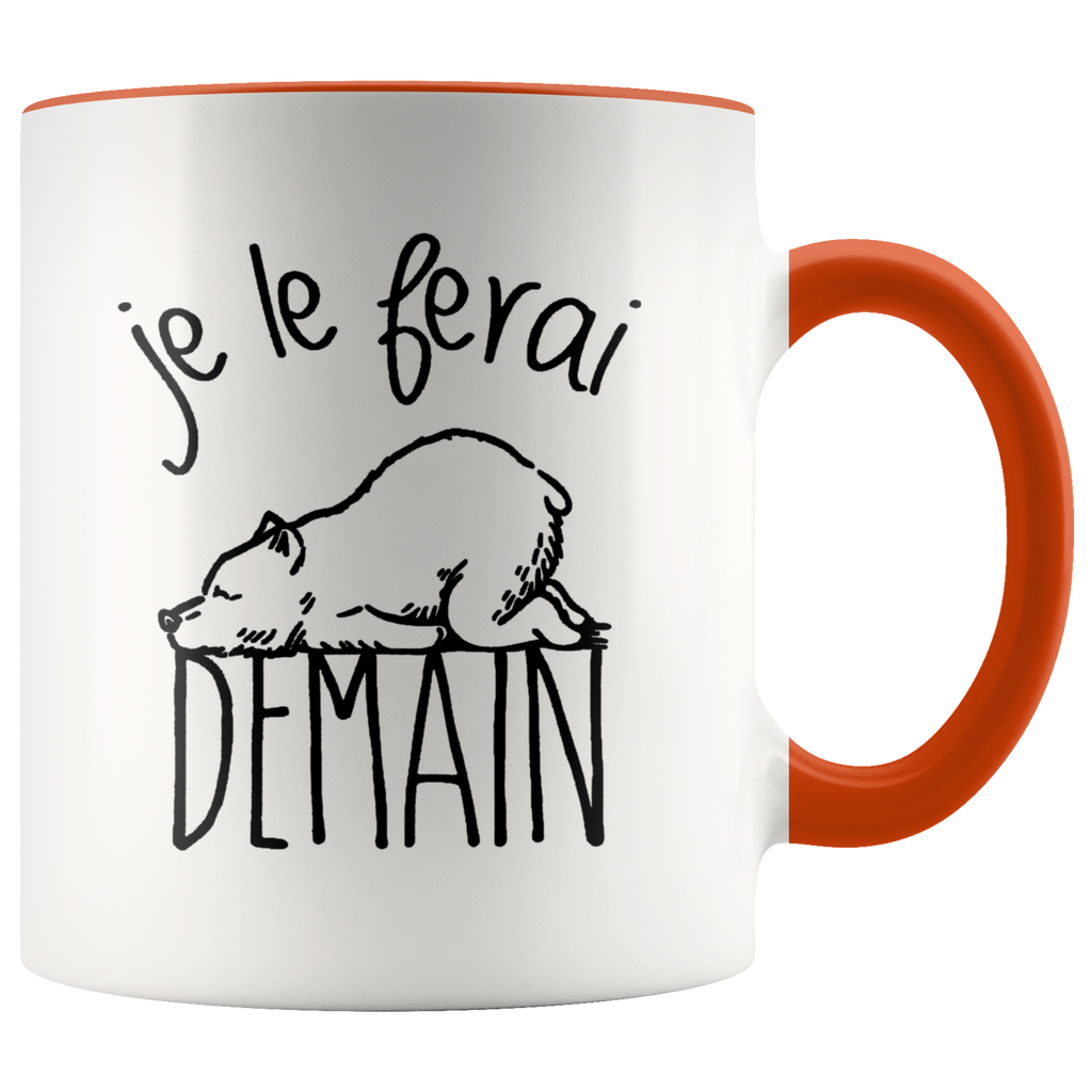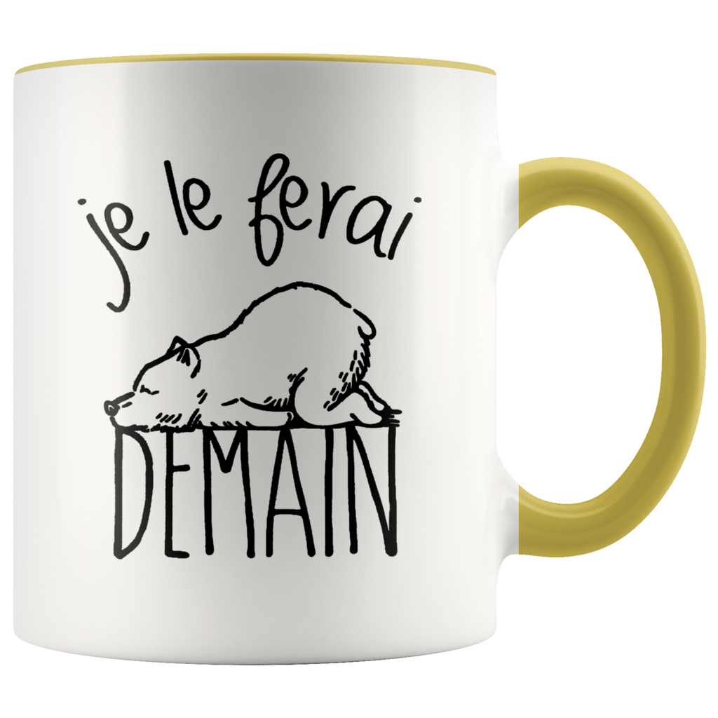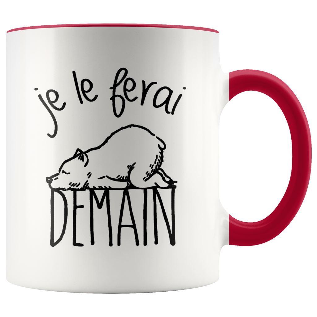 Je Le Ferai Demain Funny Bear Premium Accent Mug