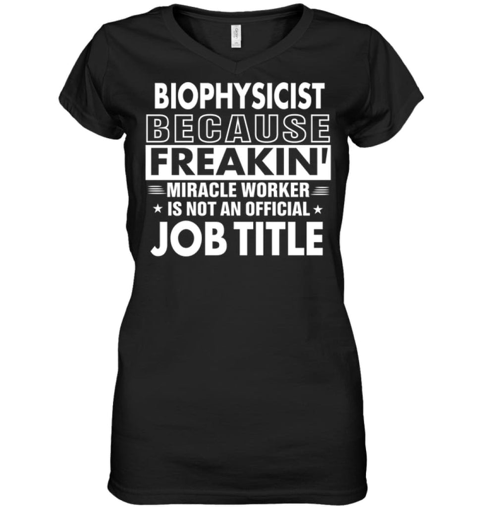 Biophysicist Because Freakin' Miracle Worker Job Title Ladies V-Neck