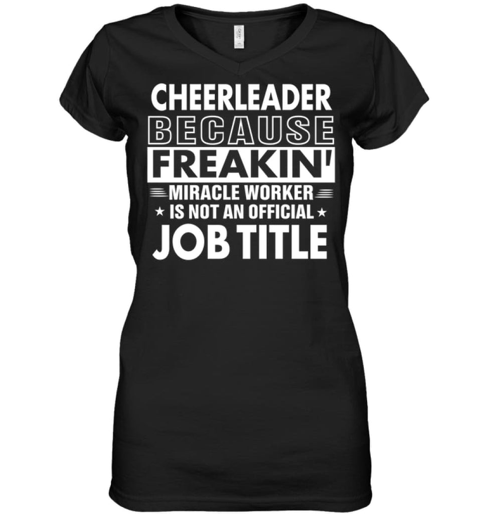 Cheerleader Because Freakin' Miracle Worker Job Title Ladies V-Neck